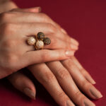 Anello Tondo Bomabato contrarier in Pavรจ di Zirconi con uno studio particolare di incassatura mista. Gambo regolabile per adattarlo alla tua misura