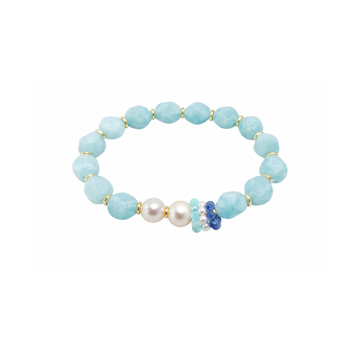 Bracciale elastico con Agata, perle e zirconi e argento 925 placcato oro. Diametro 18