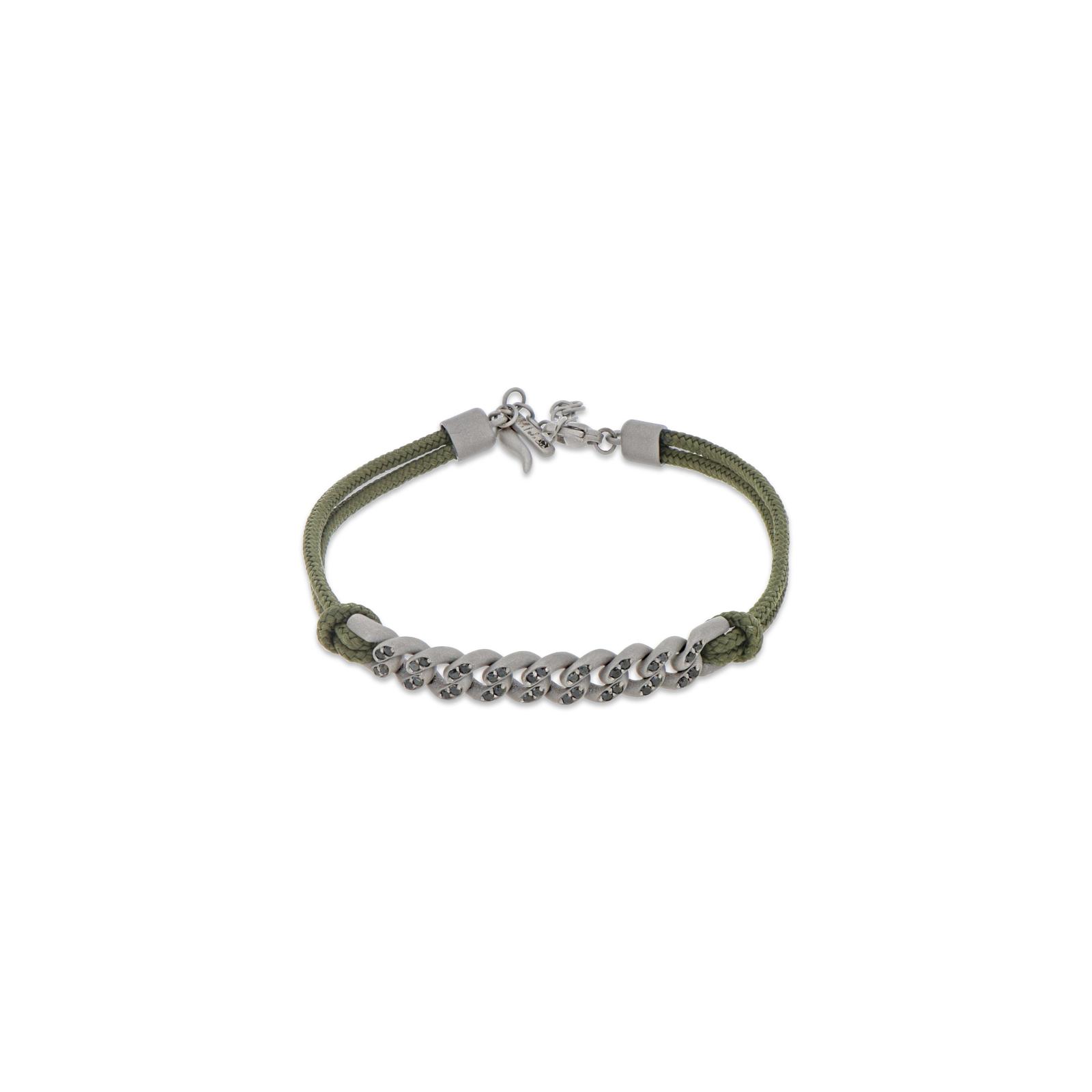 Catena groumette in titano con diamanti neri. Laccio verde militare con chiusura in titanio