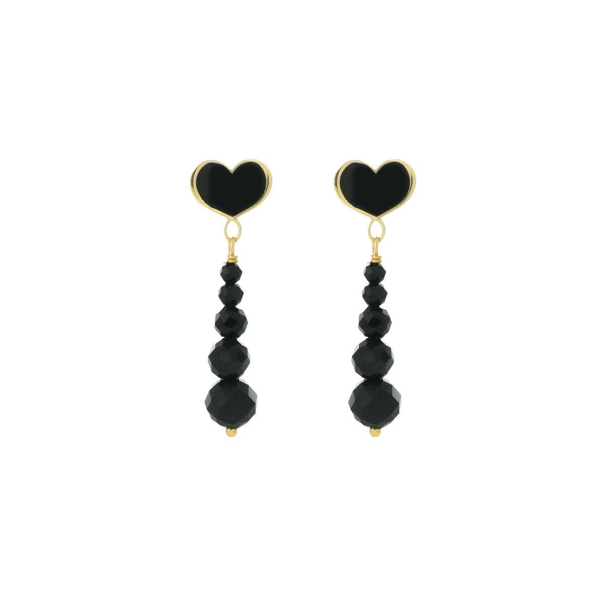 Presentano cuore Maman smaltato in nero e cinque pietre di spinello sfaccettato pendente in diverse dimensioni.