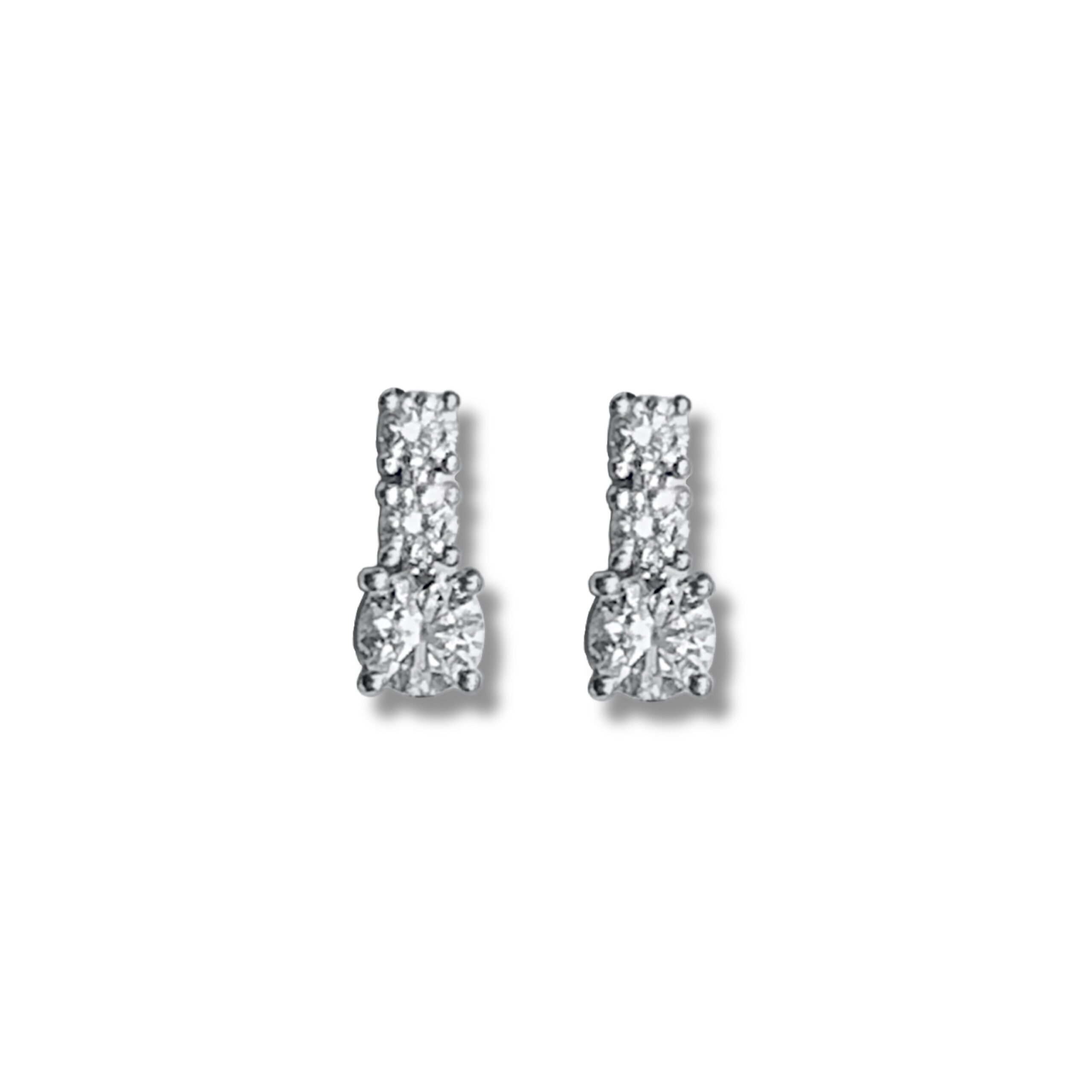 Questa coppia di orecchini in oro bianco 18kt è composta da 3 brillanti naturali i primi due con la stessa grandezza e l’ultimo più grande da ct 0.62 (totali) che esaltano un gioiello che incarna perfettamente i canoni classici della gioielleria Made in Italy.